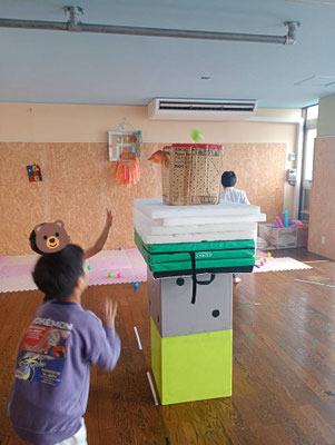 玉入れをしていくうちに、「ゴールの位置をもっと高くしてみたい!」という子どもたち😆